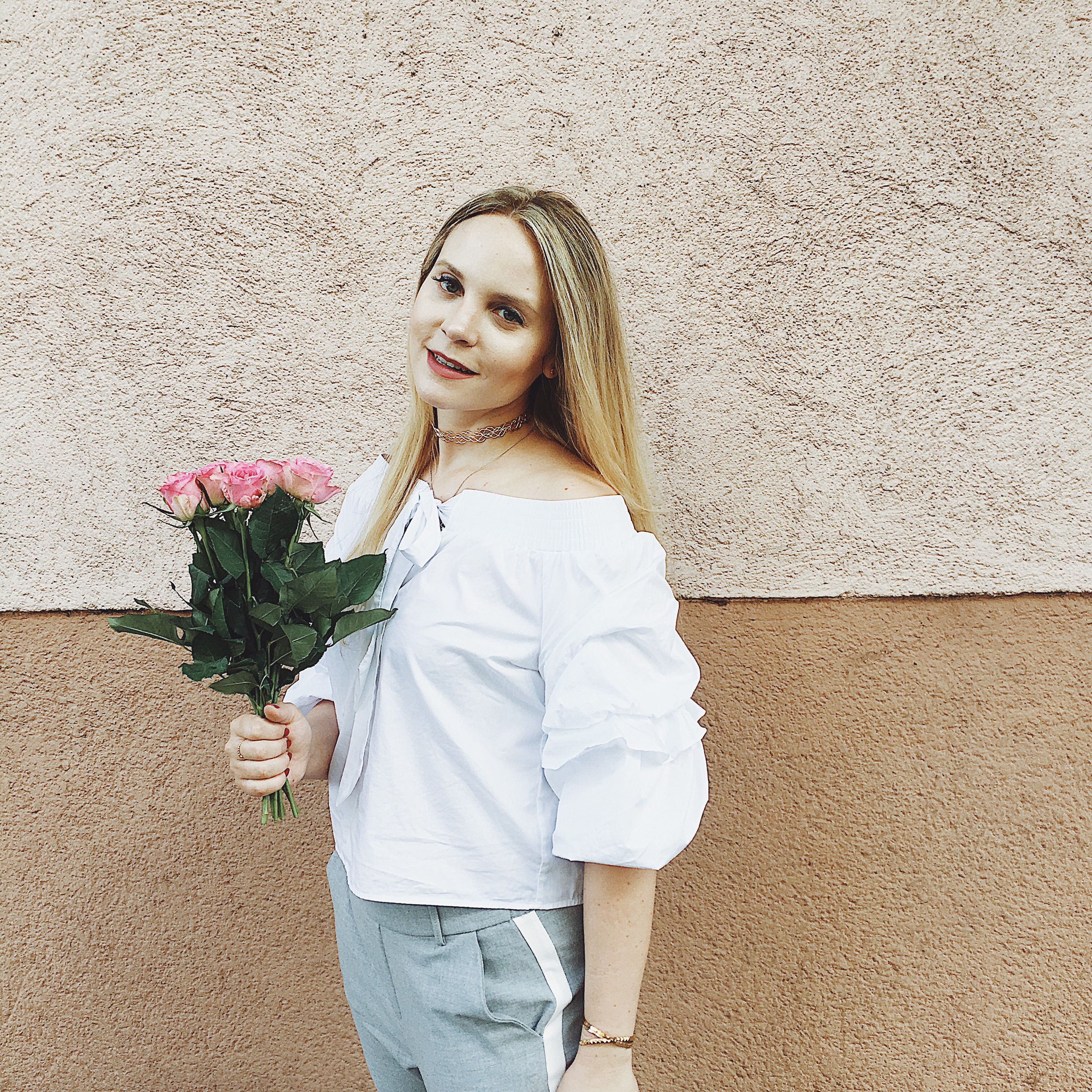 Zara Pants with Strips and pink Roses