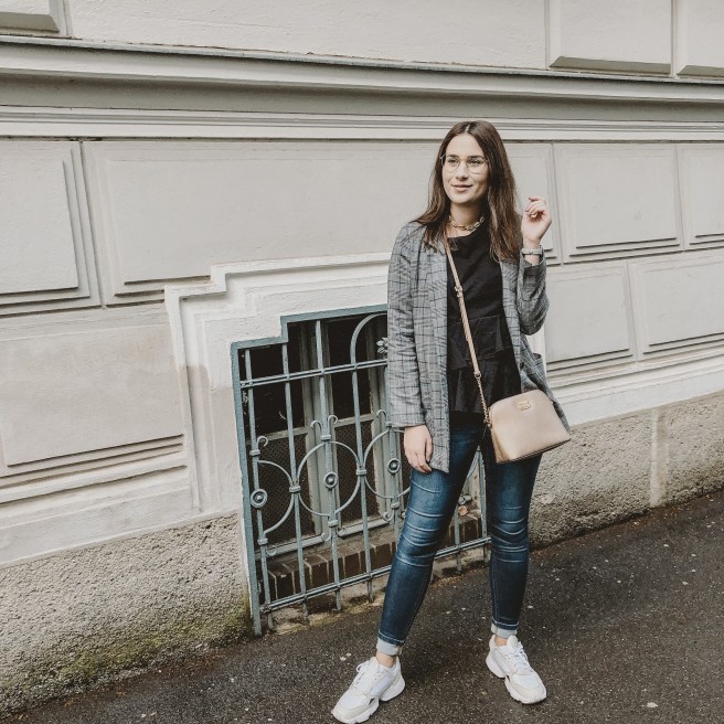 Besonders leicht zu kombinieren sind Blazer im Hahnentrittmuster, da sie sowohl super elegant und seriös für’s Büro, als auch cool gestylt werden können. Für uns ist der Hahnentritt-Blazer das perfekte „Einsteigermodell“, das jedem Outfit das gewisse Extra verleiht und so zum Beispiel auch einen „All Black“ Look zu einem absoluten Eyecatcher macht.