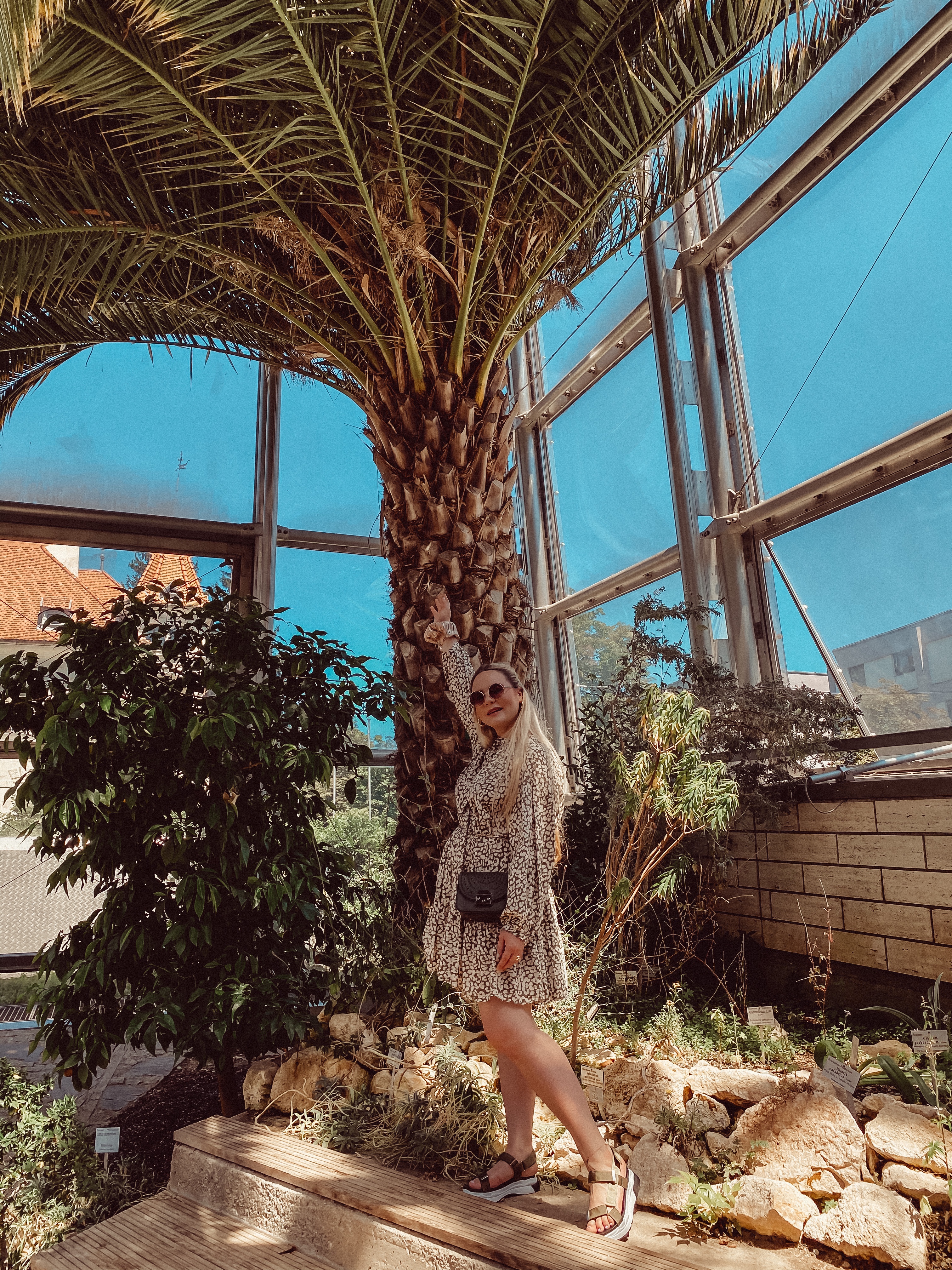 Die „Grazer Weltreise“ beginnt im botanischen Garten, in der Schubertstraße 59, wo „Regenwald“ und „Wüste“ nur eine Hängebrücke voneinander entfernt sind. Schon von außen ist das Areal ein eindrucksvoller Fotospot und besticht durch seine außergewöhnliche Form.  In den Sommermonaten bis zum 15. September hat der botanische Garten von 8 bis 16.30 Uhr geöffnet. Im Inneren kann man exotische Pflanzen aus vier Klimazonen bestaunen und das eine oder andere „Urlaubsfoto“ schießen.