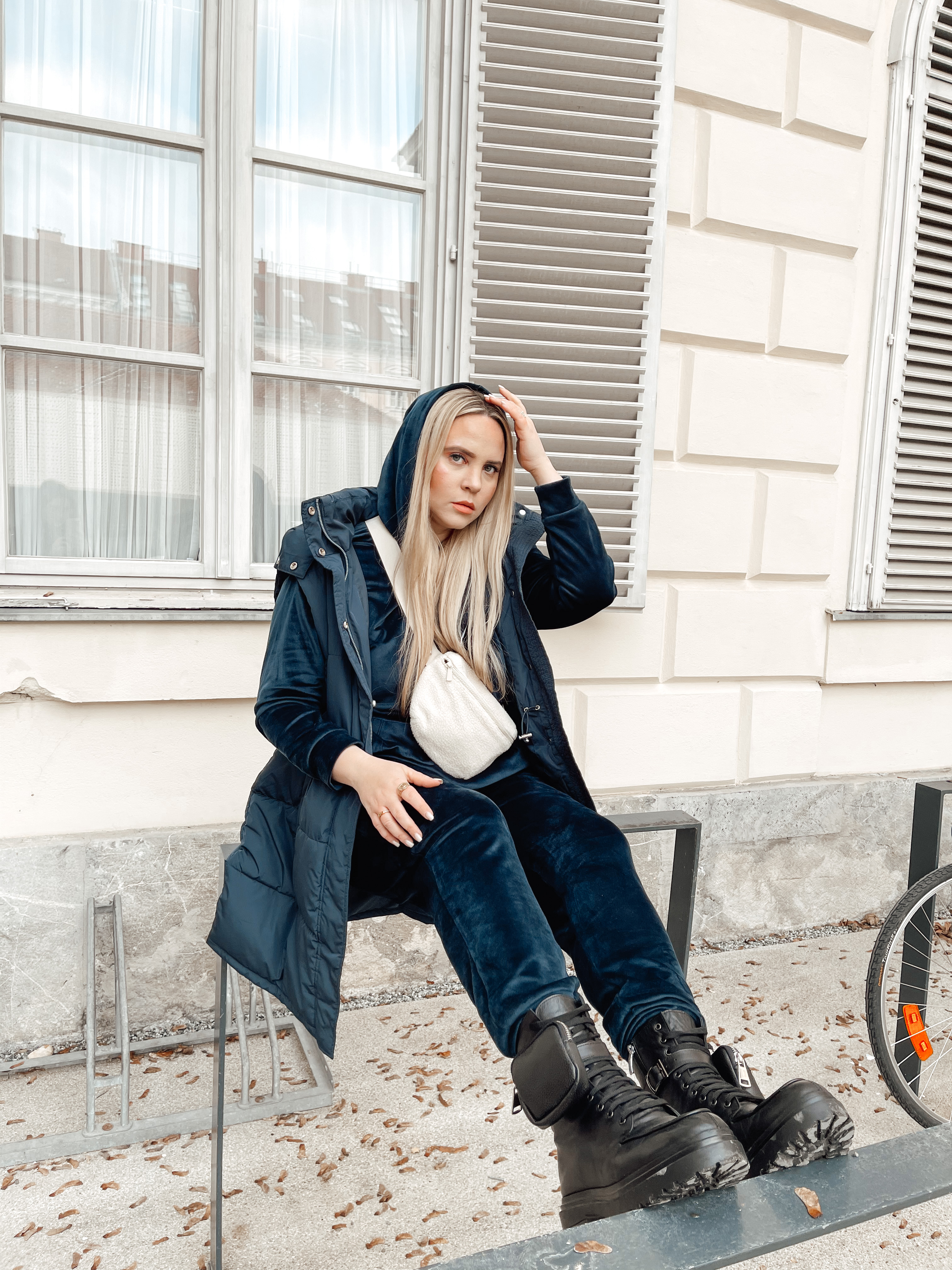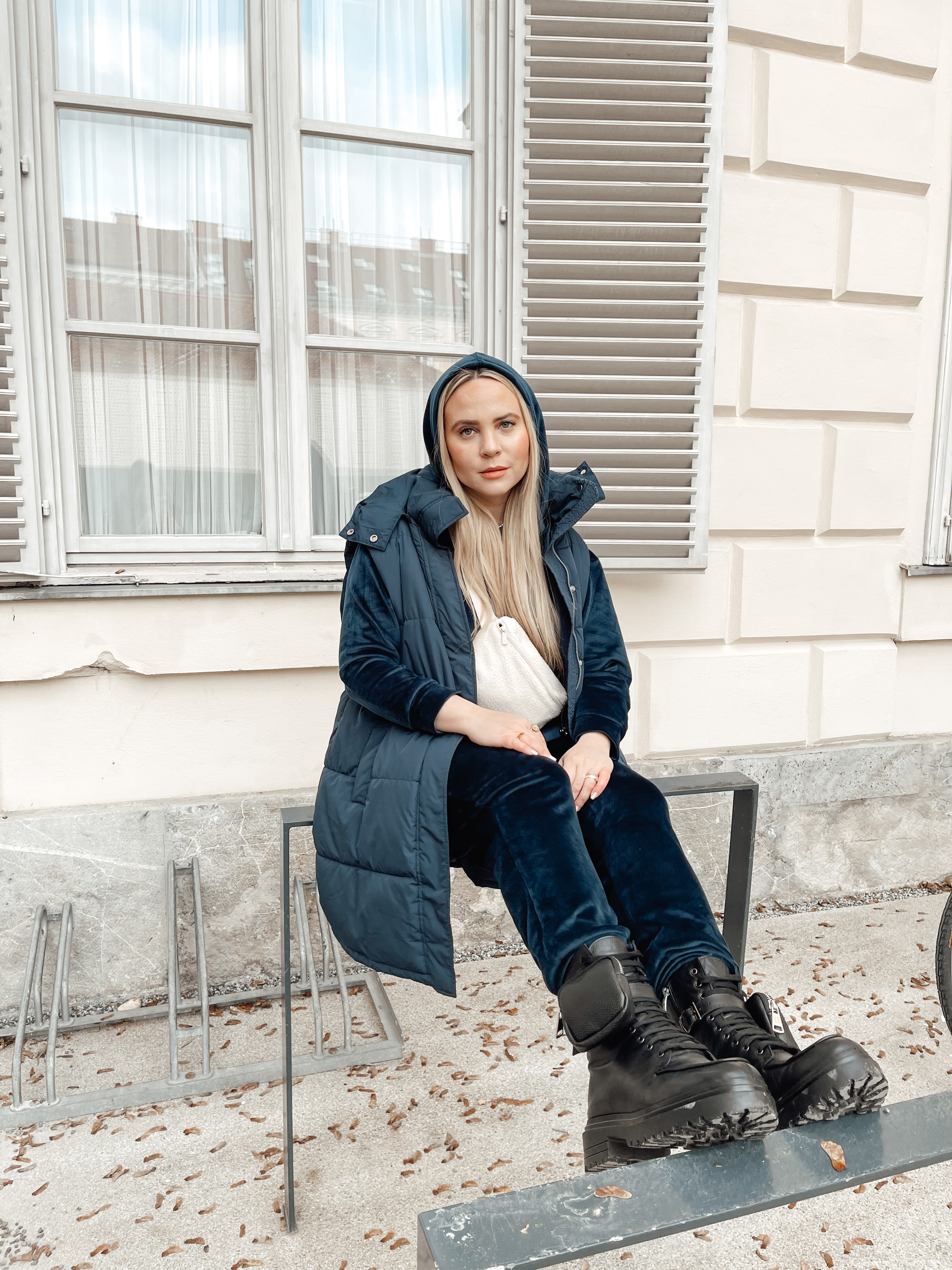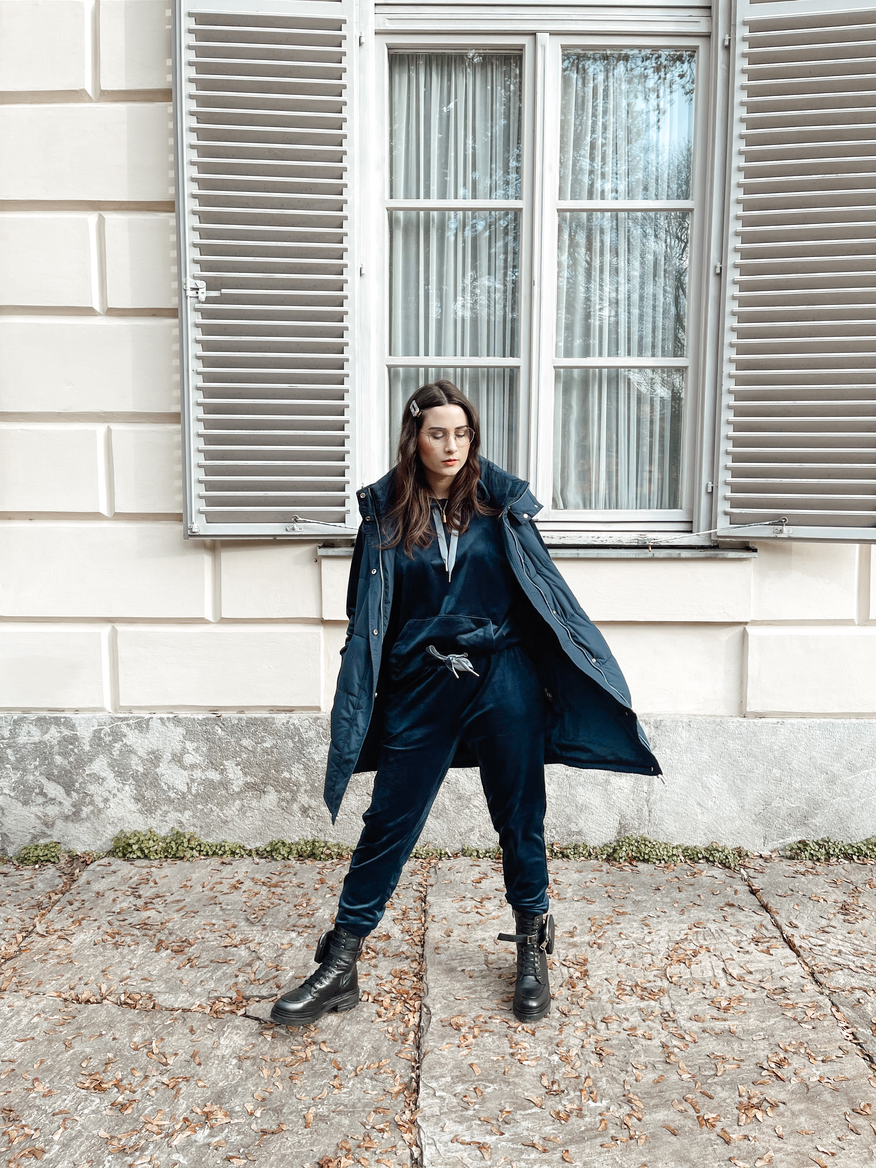 - Geh‘ raus! Geh‘ jeden Tag zumindest für ein paar Minuten raus an die frische Luft, egal ob das Wetter schlecht ist oder es kalt und grau ist! Pack‘ dich warm ein und los geht’s. Du wirst merken wie gut dir das tut und man bekommt draußen einfach viel besser den Kopf frei. Und in unserer cozy, langen Weste mit Kapuze in schönem dunkelblau trotzen wir jedem Wetter. Natürlich ist es schade, dass man derzeit so wenig unternehmen kann, aber genau darauf versuchen wir uns nicht zu konzentrieren, sondern viel mehr auf alles, was derzeit eben gut möglich ist.