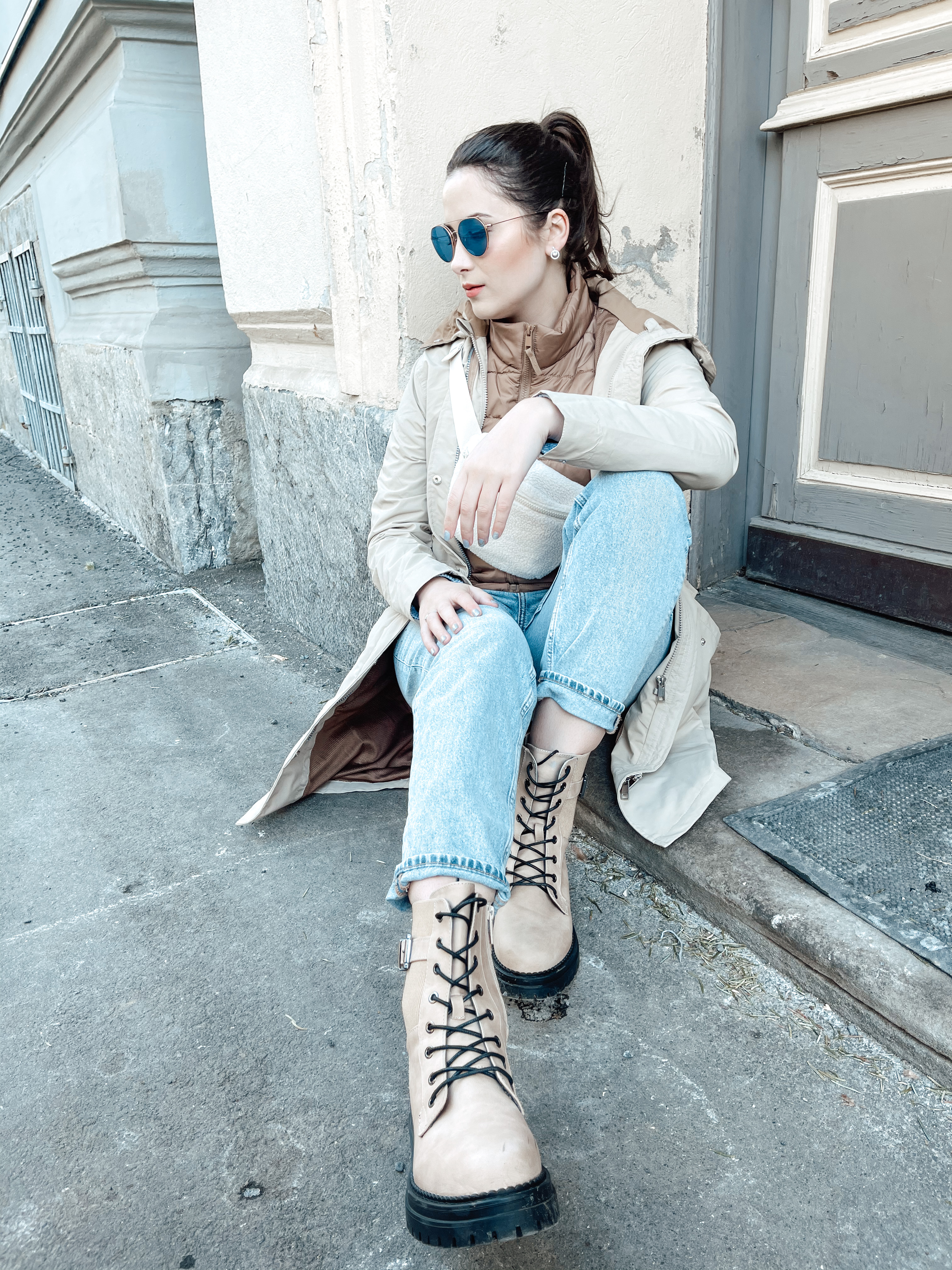 Hier haben wir euch alle Details zu den Looks auf den Bildern markiert: Bild 1: Crossbodybag, Regenjacke mit Weste Bild 2: Crossbodybag, beige Leggings (wärmespeichernd durch innovative Hohlfaser )